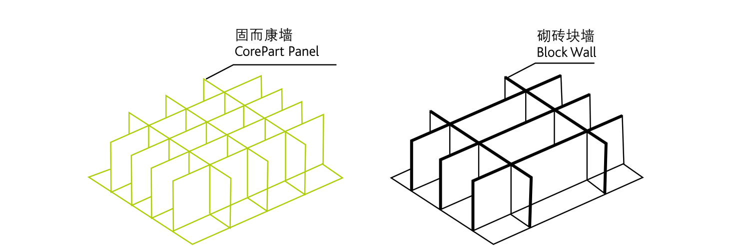 【固而康实心复合墙可在空间里任意隔断】